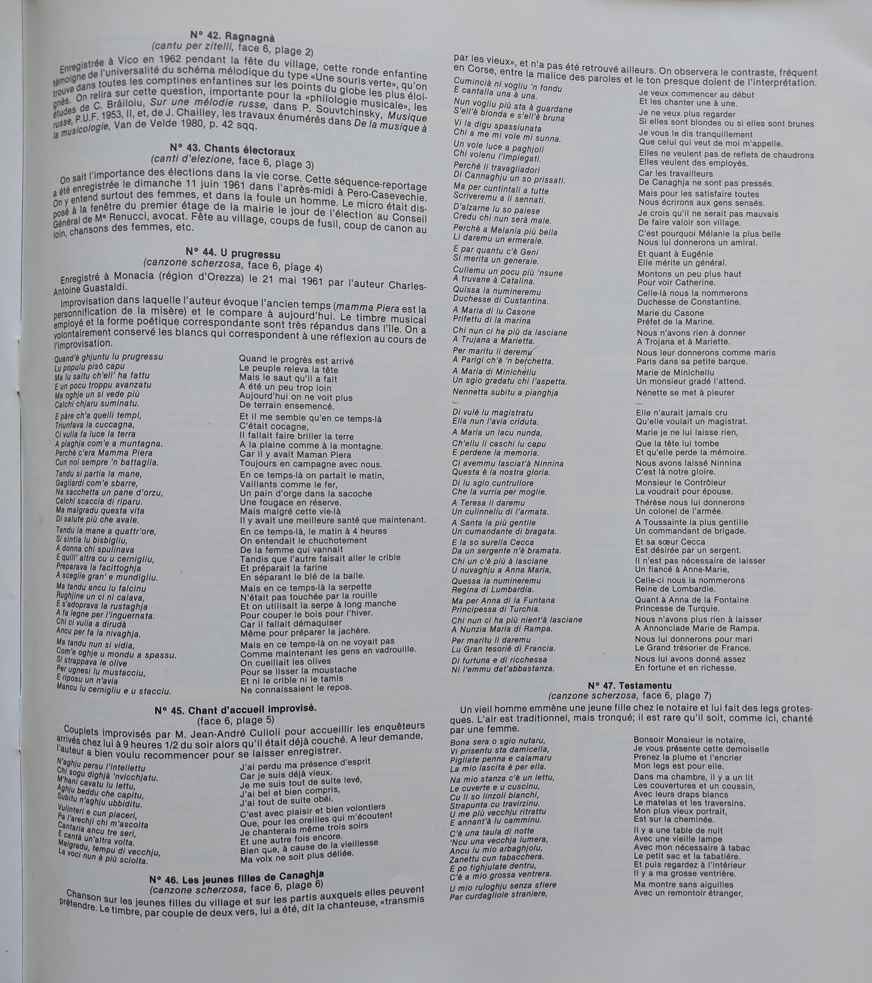 Musique Corse de Tradition Orale Mission Félix Quilici 1961 à Janvier 1963.