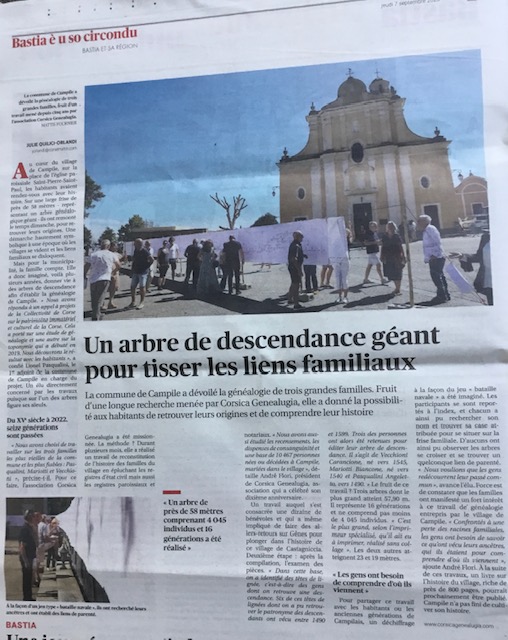 Un très belle initiative à porter au bénéfice du village de Campile gratifié ce dimanche 3 septembre d'un ciel bien ensoleillé. Voilà qui donnera sans nul doute l'envie à beaucoup d'entre vous de construire leur propre arbre généalogique ou de participer à l'association Corsica Genealugia.